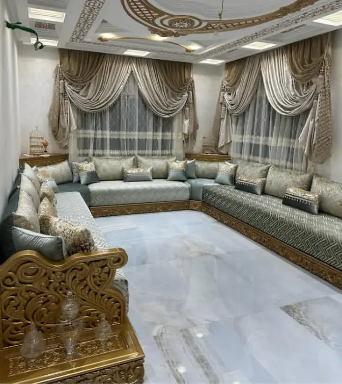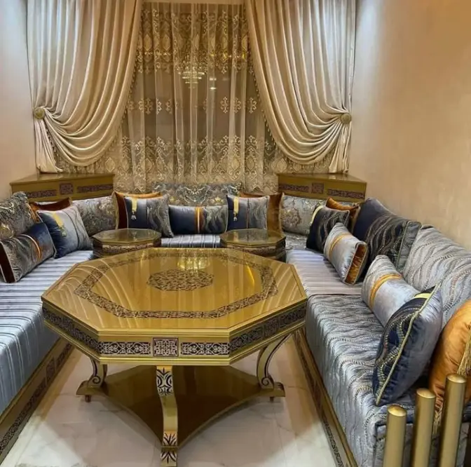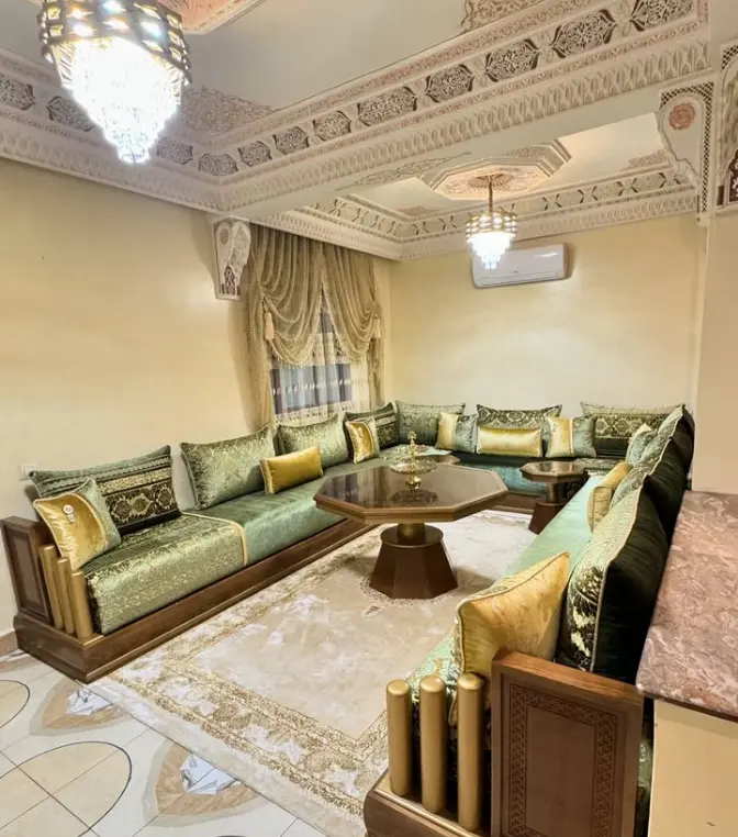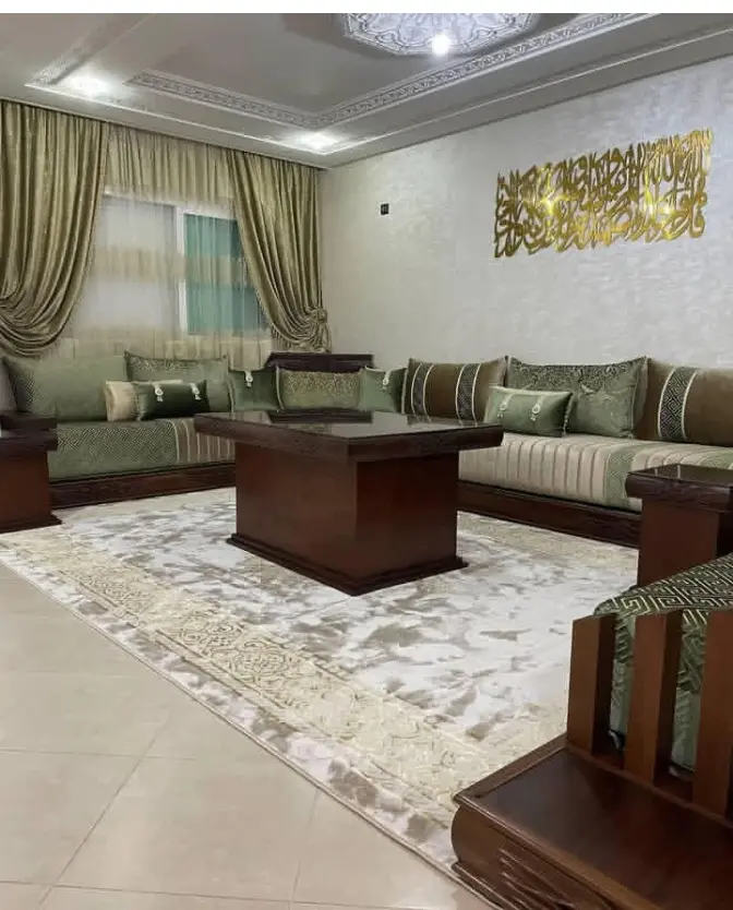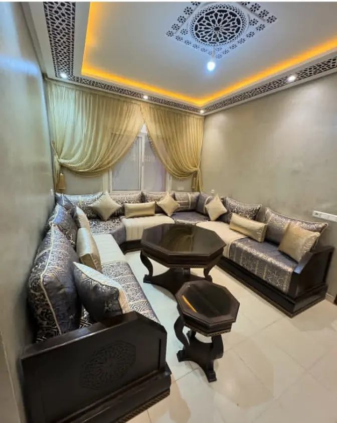 Plongez au cœur de l’art de vivre. Nos Salons Marocains sont de véritables chefs-d’œuvre, alliant bois sculpté, tissus nobles et motifs traditionnels. Conçus pour les moments de partage et de convivialité, ils apportent une âme et une chaleur incomparables à votre maison.